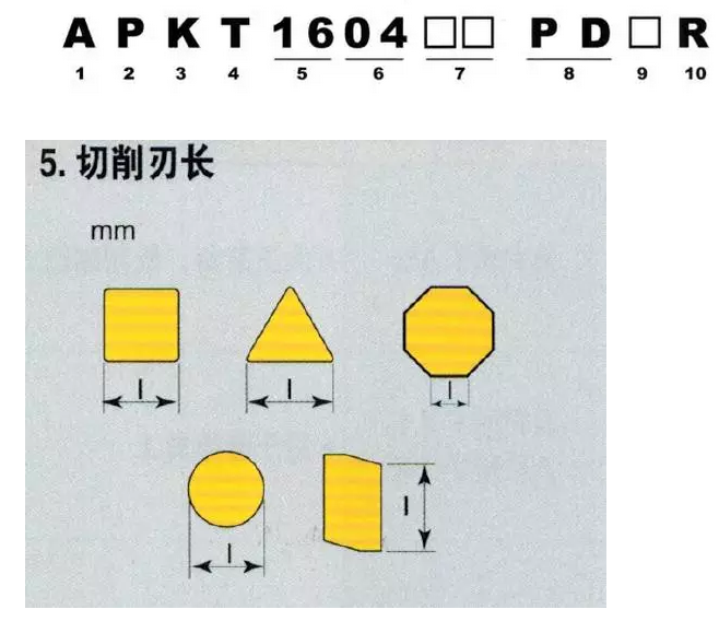 此部分切削刃長用整數(shù)部分表示。切削刃長度為 16mm ,則數(shù)字代號為 16 。