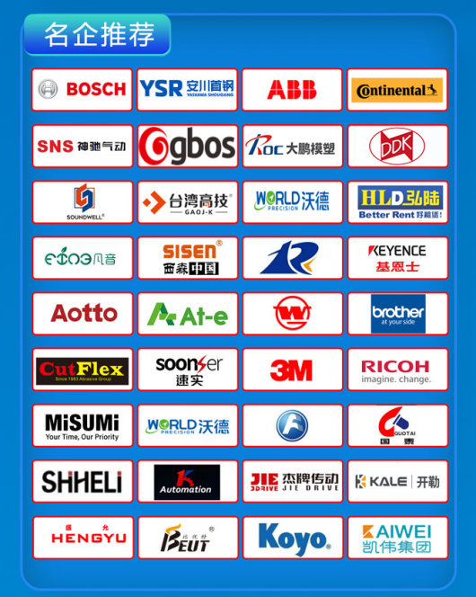 本屆參展企業(yè)超600家,他們來自武鋼、濟源鋼鐵、米思米、神馳、光博士、鉆石、伊卡藍、基恩士、高技、劍平、工星人、3M、乾行達、桃子、莫特森、大韓貿易、光洋、江一特智、龍工、爾川、兄弟公司等優(yōu)秀企業(yè)。