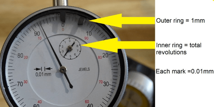 1、千分表的工作原理是通過測量桿的位移來顯示被測物體的尺寸變化。