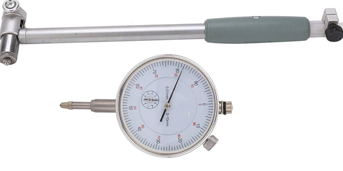 2、測(cè)量大型零件的內(nèi)徑,例如發(fā)動(dòng)機(jī)缸體:需要選擇測(cè)量范圍更大、長度更長的百分表,例如100mm、150mm或更長的測(cè)量桿長度。測(cè)量范圍通常在50-150mm,甚至更大。