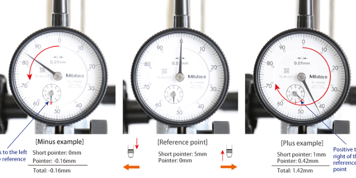 2、有些百分表帶有預壓功能,可以將指針預先設定在一個非零位置,例如設定在5mm處,這樣可以擴大測量范圍。例如,量程為0-10mm,預壓5mm,則測量范圍為-5mm到+5mm。