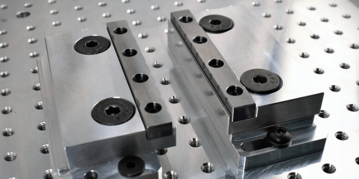 4、組合夾具是由一些標準化的元件組合而成的夾具,可以根據需要靈活調整,適應不同工件的加工。它們就像我們玩的積木,可以根據需要拼搭出不同的形狀。