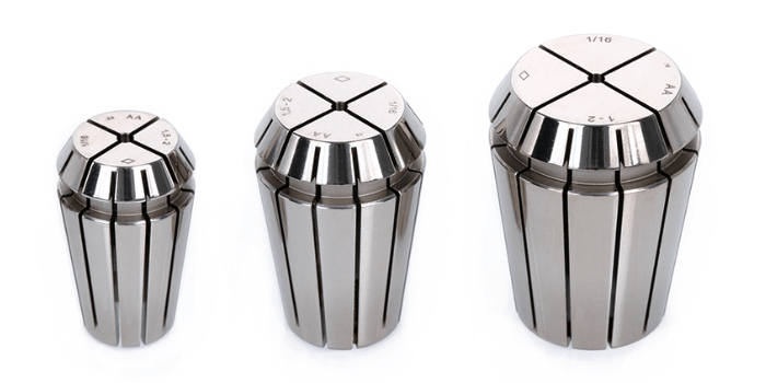2、精度等級選擇根據加工要求確定,精密加工選用跳動精度0.005毫米以內的高精度筒夾,一般加工可選用0.01-0.02毫米精度的標準筒夾,粗加工使用0.05毫米精度的經濟型筒夾。