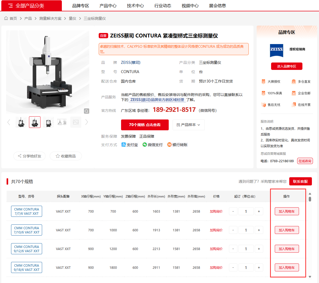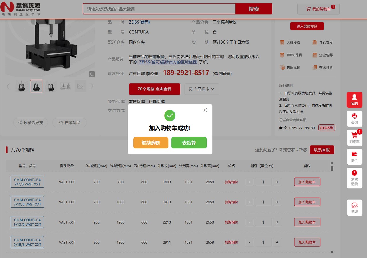 2.1、選擇產品及型號,點擊加入購物車,可以選擇一個產品或者多個產品
