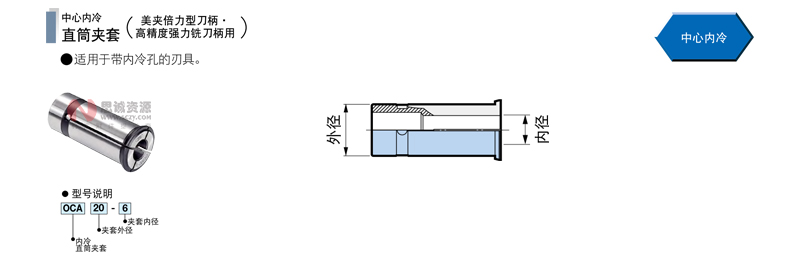 1. 內冷直筒夾套對應刀尖給油的中心內冷方式,請使用帶有內冷孔的刃具。