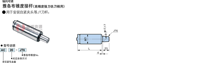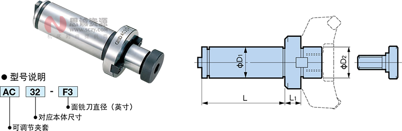 高精度強力銑刀柄用,軸向可調,用于安裝符合JIS規格B4114的正面銑刀盤.