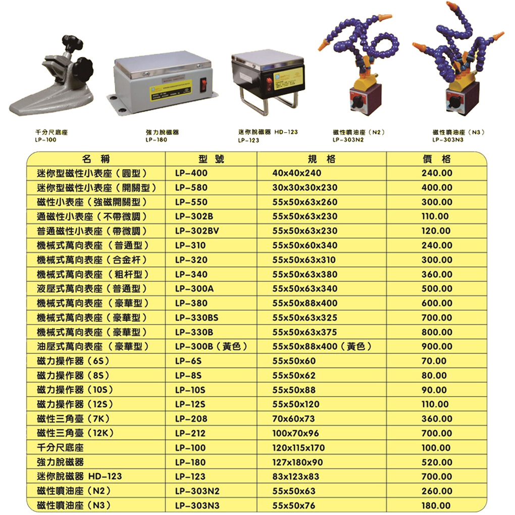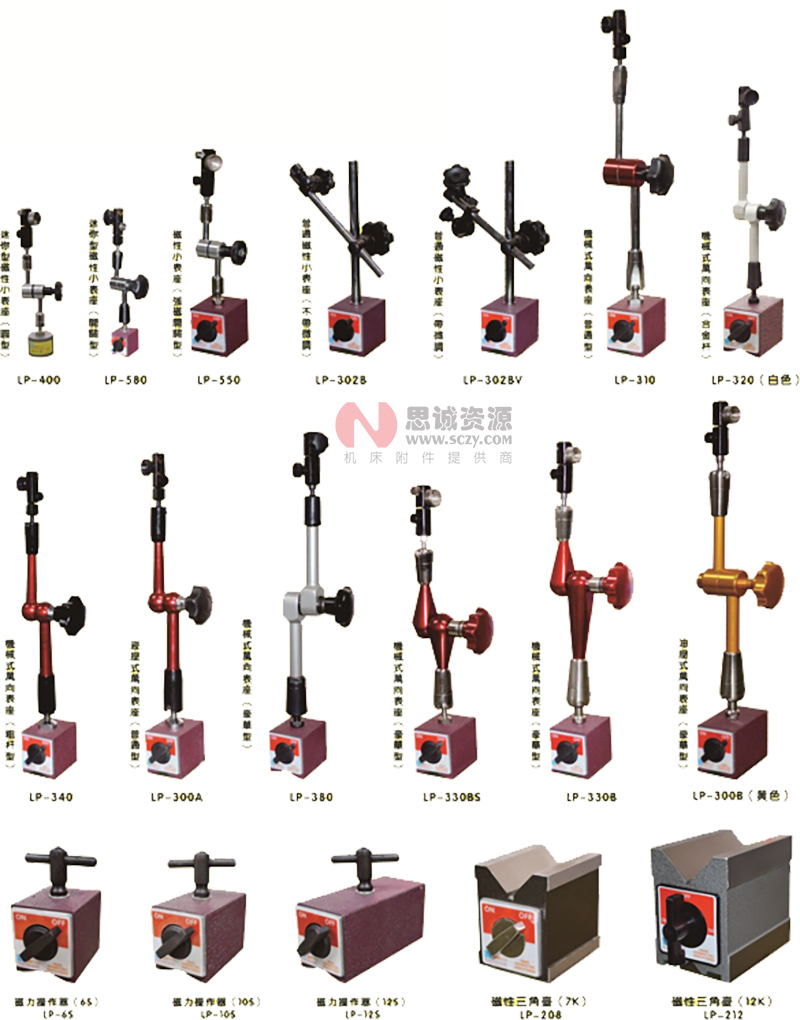主要適用機床: 測量 銑床 磨床 數(shù)控機床 線切割。底部磁性底座吸附在機床上,固定各種儀表來測量。