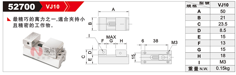 思誠資源為您提供:GIN精展不銹鋼工具萬力52700/VJ10的采購報價、GIN(精展)52700型號參數、規格圖片、PDF畫冊等資料,如您想了解更多關于GIN(精展)正品品牌的其他精密平口鉗資料與產品貨期庫存、行情價格,就在思誠資源MRO商城。