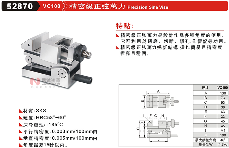 思誠資源為您提供:GIN精展精密級(jí)正弦萬力52870/VC100的采購報(bào)價(jià)、GIN(精展)52870型號(hào)參數(shù)、規(guī)格圖片、PDF畫冊(cè)等資料,如您想了解更多關(guān)于GIN(精展)正品品牌的其他精密平口鉗資料與產(chǎn)品貨期庫存、行情價(jià)格,就在思誠資源MRO商城。