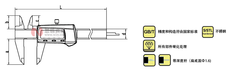 | 貨號 NO. | 測量范圍 (mm) | 精度 (mm) | L (mm) | a (mm) | b (mm) | c (mm) | d (mm) |