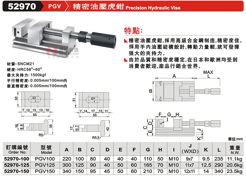 思誠資源為您提供:GIN精展精油油壓虎鉗52970/PGV的采購報價、GIN(精展)52970型號參數、規格圖片、PDF畫冊等資料,如您想了解更多關于GIN(精展)正品品牌的其他精密平口鉗資料與產品貨期庫存、行情價格,就在思誠資源MRO商城。