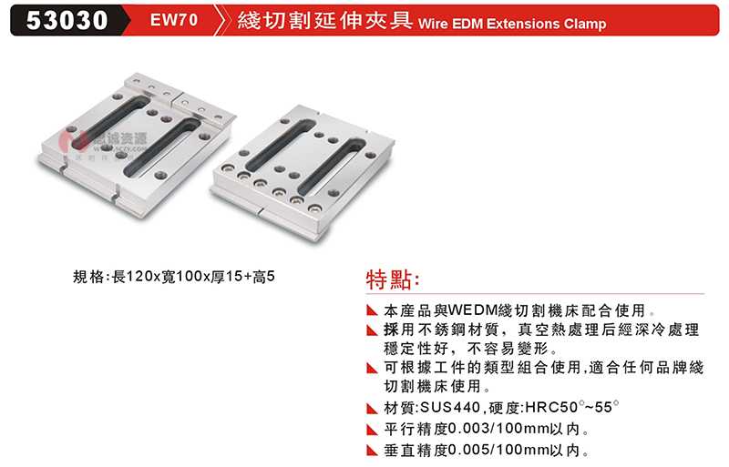 采用不銹鋼材質,真空熱處理后經深冷處理穩定性好,不容易變形。可根據工件的類型組合使用,適合任何品牌線切割機床使用。