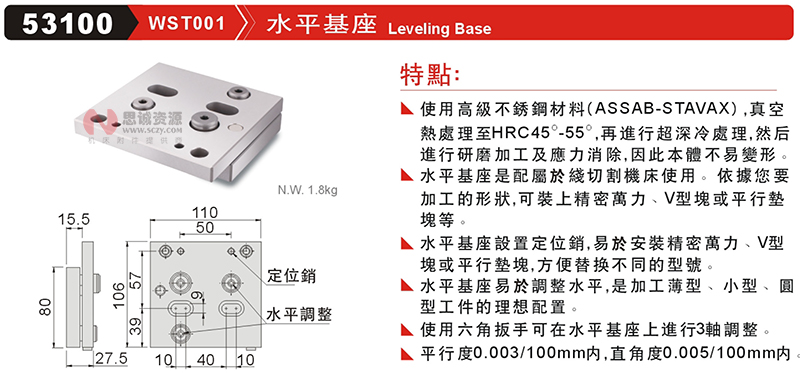 思誠資源為您提供:GIN精展水平基座53100/WST001的采購報價、GIN(精展)53100型號參數、規格圖片、PDF畫冊等資料,如您想了解更多關于GIN(精展)正品品牌的其他精密平口鉗資料與產品貨期庫存、行情價格,就在思誠資源MRO商城。