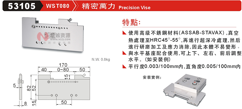 思誠資源為您提供:GIN精展精密萬力53105/WST080的采購報價、GIN(精展)53105型號參數(shù)、規(guī)格圖片、PDF畫冊等資料,如您想了解更多關(guān)于GIN(精展)正品品牌的其他精密平口鉗資料與產(chǎn)品貨期庫存、行情價格,就在思誠資源MRO商城。