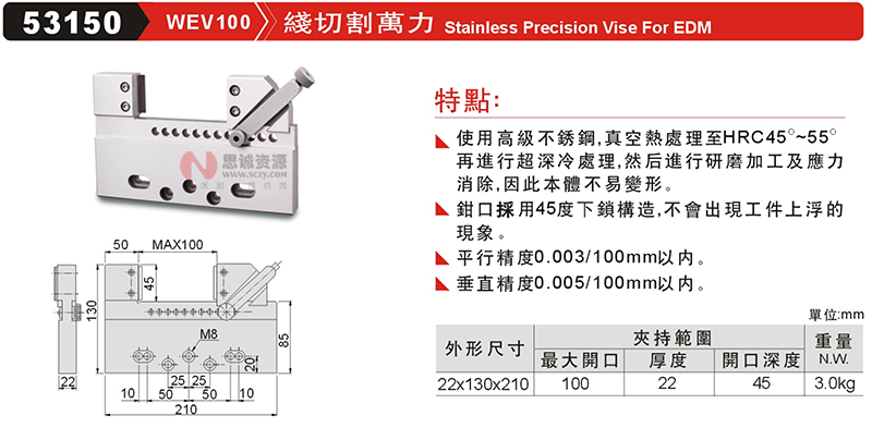 思誠資源為您提供:GIN精展線切割萬力53150/WEV100的采購報價、GIN(精展)53150型號參數、規格圖片、PDF畫冊等資料,如您想了解更多關于GIN(精展)正品品牌的其他精密平口鉗資料與產品貨期庫存、行情價格,就在思誠資源MRO商城。