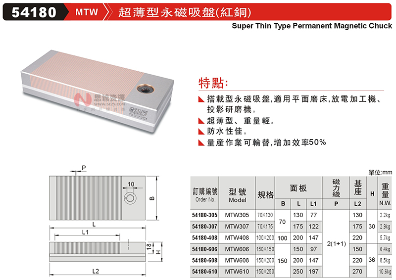 思誠資源為您提供:GIN精展超薄型永磁吸盤(紅銅)54180/MTW的采購報價、GIN(精展)54180型號參數、規格圖片、PDF畫冊等資料,如您想了解更多關于GIN(精展)正品品牌的其他電磁吸盤資料與產品貨期庫存、行情價格,就在思誠資源MRO商城。