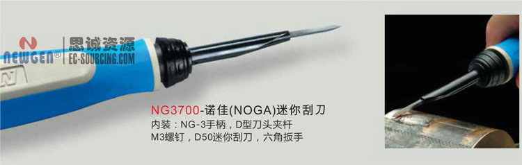 思誠資源為您提供:NG3700 諾佳(NOGA) 迷你刮刀的采購報價、NOGA(諾佳)NG3700型號參數、規格圖片、PDF畫冊等資料,如您想了解更多關于NOGA(諾佳)正品品牌的其他修邊器資料與產品貨期庫存、行情價格,就在思誠資源MRO商城。