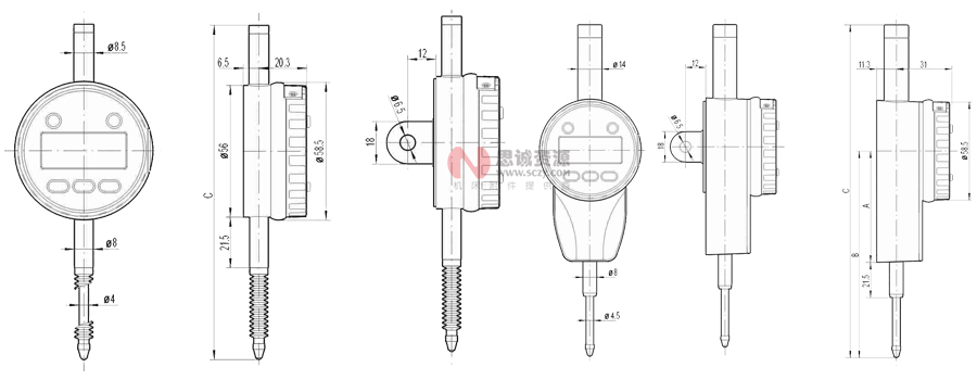 | 貨號(hào) NO. | 測(cè)量范圍(mm) | 精度(mm) | 測(cè)量力(N) | A(mm) | B(mm) | c(mm) |
