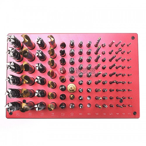 - 刀具架共容納標準規(guī)格銑刀,鉆頭,絲錐,共113支,整理后刀具數(shù)量規(guī)格及新舊程度一目了然,有效避免生產過程反復挑選刀具浪費工作時間,大大提高實際工