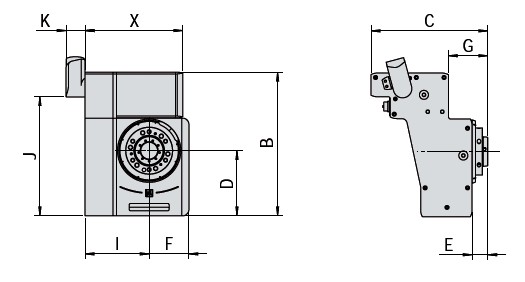 | 重量 [kg] | 最大主軸載荷 [kg] | 夾緊力矩 [Nm] | 傾斜力矩 [Nm] | 軸向作用力 [kN] | 質量慣性矩 J [kgm2] | 齒輪箱 載荷 [Nm] | 零件精度 [arc sec]** | |||