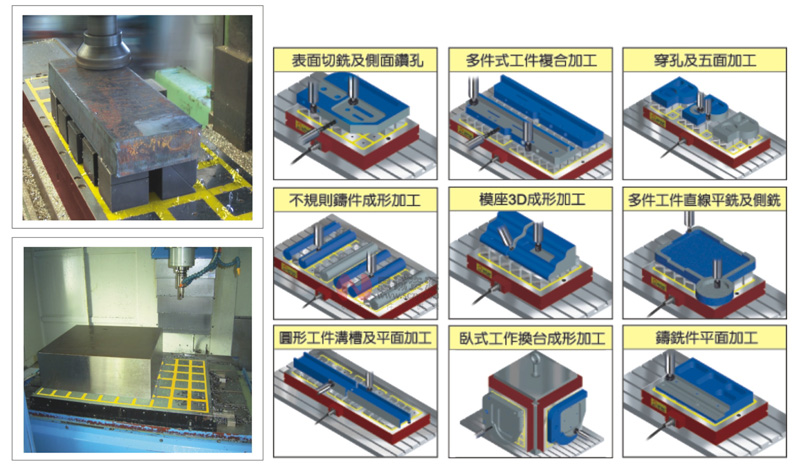 可長時間使用,不會因溫度升高導致工件變形影響精度。大幅提升工作效率,減少重復定位公差。夾持面積能平均覆蓋完整加工范圍,可同時加工多件工作物,改善加工流程時間。
