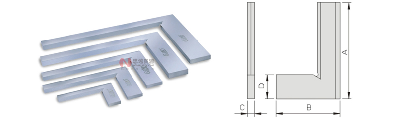 直角尺內外角度精準,它由單片全面工具鋼制成,并經過精準的研磨。表面鍍暗鉻,避免反光,便于觀察。直角尺的兩邊都磨上斜邊,在內角有一薄槽,以利清除污納物。