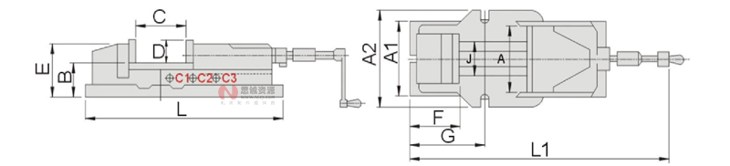 | 訂購編號 Order No. | 型號 Model | A | A1 | A2 | B | 夾持范圍 | D | E | F | G | J | L | L1 | 夾持力 | 主體重量 N.W. | 底盤重量 N.W. | |||