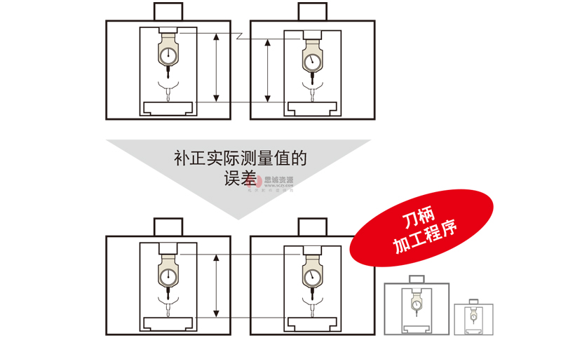 如果對每臺機床Z軸原點到工作臺面的距離誤差進行補正,就能實現多臺加工中心間刀柄,程序的共有。
