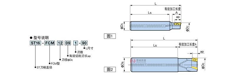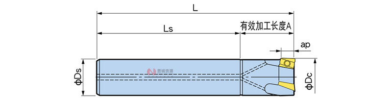 | 刀徑 φDc | 型號 | 圖 | φDs | 有效切削刃長 ap | L | 有效加工長度 A | Ls | 刃數(shù) | 對應(yīng)刀片型號 | 質(zhì)量 (kg) |