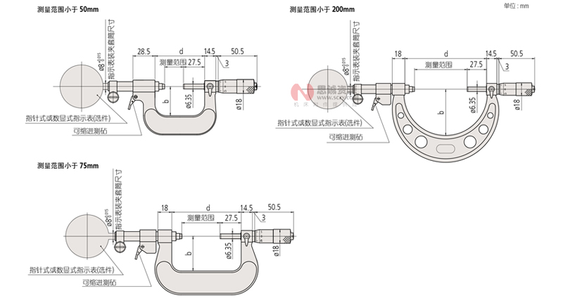 帶有指針式指示表,可對批量生產的工件直接進行GO/±NG判斷。