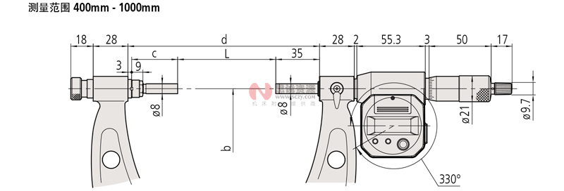 帶有可更換測砧的寬度測量范圍。