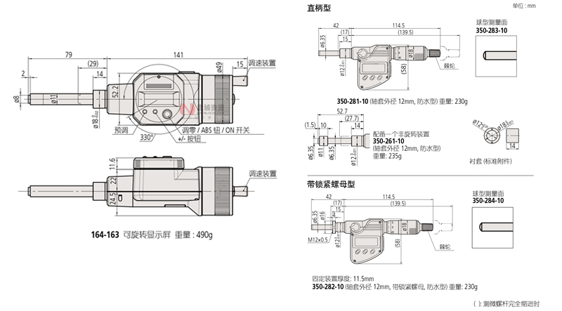 | 164-163 | 0 - 50mm | — | ±3μm | 直柄型 | 18mm | 平面 (硬質(zhì)合金頭) | — |