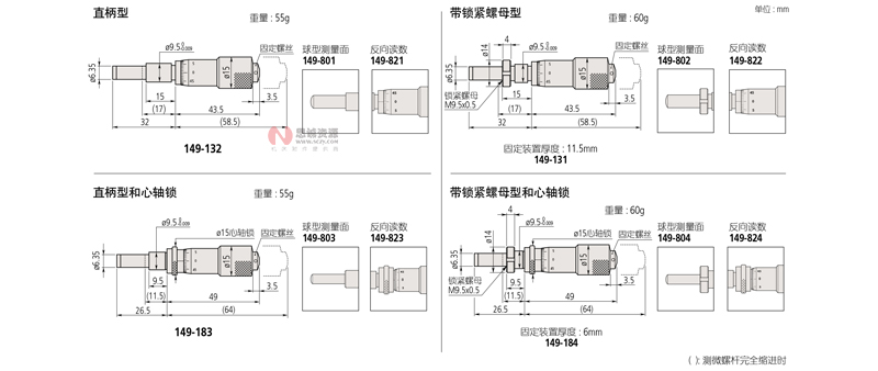 | 149-821 | 直柄型 | 普通型 (硬質(zhì)合金頭) | 反向讀數(shù) | |||