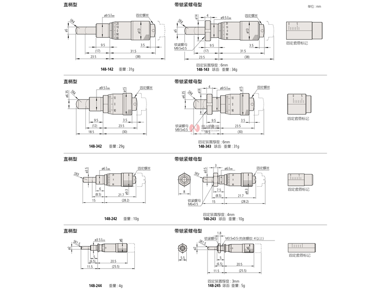 | 148-243 | 帶有鎖緊螺母 | |||||||