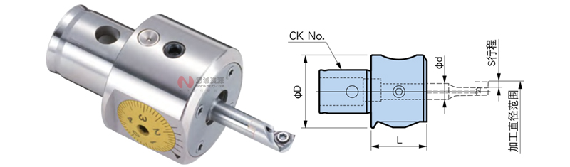 最小外徑φ18.5mm(EWN04-7CK1)的超小徑精鏜頭。 最小微調刻度0.01mm/φ2μm的超精密游標。
