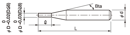 | 型號 | 直徑 φD | 刃長 R | 柄錐角度 Bta | 全長 L | 柄徑 φd |