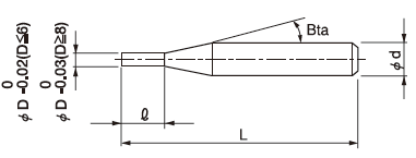 | 型號 | 直徑 φD | 刃長 R | 柄錐角度 Bta | 全長 L | 柄徑 φd |