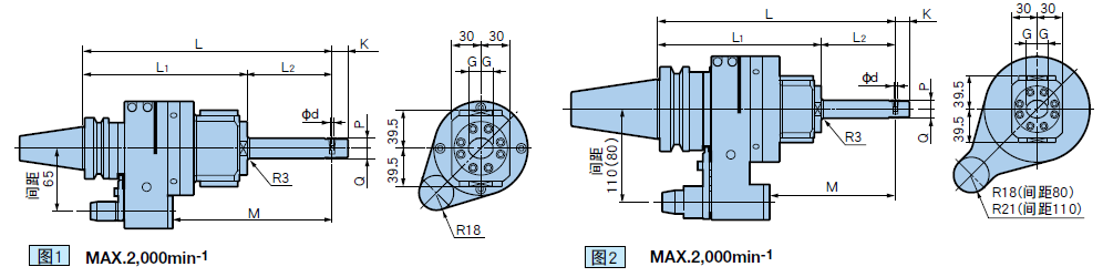 | BIG-PLUS BBT基礎(chǔ)柄組合 型號(hào) | 本體 型號(hào) | 鏜頭型號(hào) | 圖 | φd | G | K | L | L1 | L2 | M | P | Q | 旋轉(zhuǎn)比率 主軸 :角度軸 | 質(zhì)量(kg) | ||