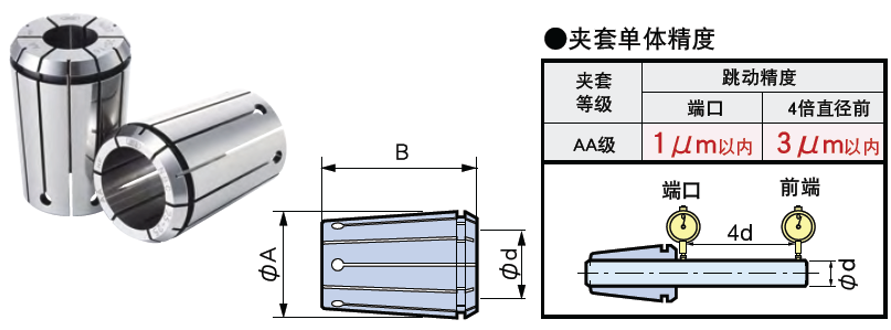 世界廣受好評的高精度夾套,端口跳動精度為1μm,對應高精度加工也能發揮超強威力。