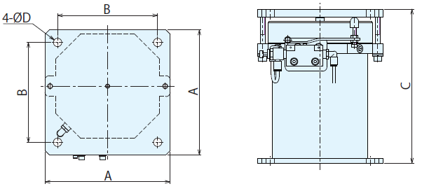 | 訂單號 | 型號 | A | B | C | D | 產品重量1個(4個) | 容許負荷(4個防振座) | |