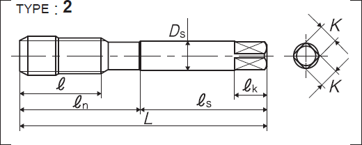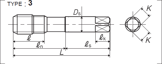 | 全長 | 吃入部+完全螺紋部的長度 | 螺紋部長 | 頸下長 | 柄部長 | 柄徑 | 四角部寬 | 四角部長 |