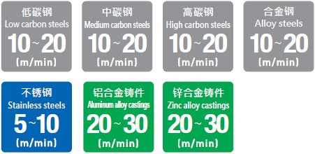 采用可將表面涂層的特長(耐磨耗性、耐熱性、耐溶著性)發揮到最大極限的溝型,并適用于各種被削材。最適合使用水溶性切削油。