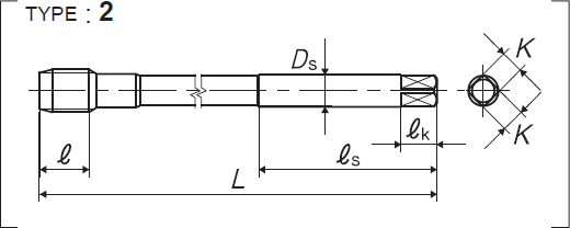 ■適合加工易產生加工硬化、材質較黏的不銹鋼、鉻鋼、鉬鋼用的長柄不銹鋼用短牙型螺旋絲攻,也可以加工深孔的螺紋。