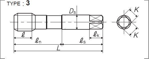 | 全長(zhǎng) | 吃入部+完全螺紋部的長(zhǎng)度 | 螺紋部長(zhǎng) | 頸下長(zhǎng) | 柄部長(zhǎng) | 柄徑 | 四角部寬 | 四角部長(zhǎng) |