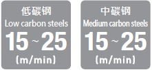 ■用于高速15m/min~25m/min加工的螺旋絲攻。若用于低速切削,切屑的形狀或排出性變差,易發(fā)生切屑干擾等加工問題。