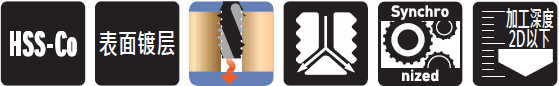 ■采用可超高速加工或噴霧、干式加工的側邊出油孔構型。適合加工碳鋼、合金鋼等的通孔,立式、臥式加工兼用,可作為干式加工或超高速加工使用。