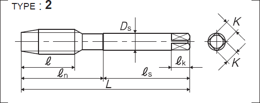 | 全長 | 螺紋部長 | 頸下長 | 柄部長 | 柄徑 | 四角部寬 | 四角部長 |