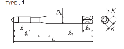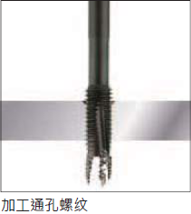 ●吃入部上有螺旋溝槽設計,切屑從前面排出(絲攻前進的方向),請使用在通孔螺紋的加工上