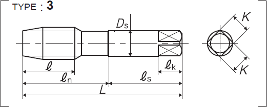 | 全長 | 螺紋部長 | 頸下長 | 柄部長 | 柄徑 | 四角部寬 | 四角部長 |