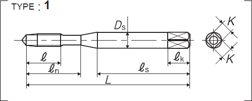 | 全長 | 螺紋部長 | 頸下長 | 柄部長 | 柄徑 | 四角部寬 | 四角部長 |